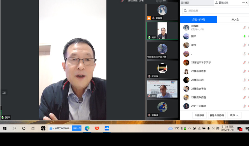 2022年11月11日晚,陕西省作协副主席李国平老师应邀为kaiyun官网师生开展了题为《诺贝尔文学奖的四个问题》的学术讲座,kaiyun电子平台讲师刘雪娥主持讲座,学院百余名师生在线聆听了讲座。