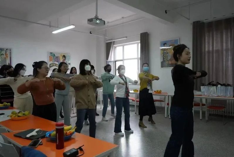 为开展本次活动,学院特地邀请了来自舞蹈学院的老师指导大家学习健美操。随着活动的深入,女老师们渐入佳境,以更加轻松自信的姿态互相交流,学习掌握健美操的各个动作。老师们表示,希望这样的活动成为常态化,不是节日特别仪式,而是真正成为一个有意义的日常活动。