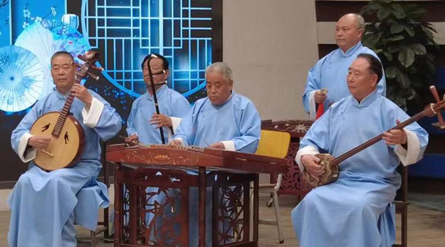 文县土琵琶弹唱一曲《放风筝》,演员们边弹土琵琶,边高歌齐唱,现场氛围被调动起来,同学们也随着音乐打着节拍。