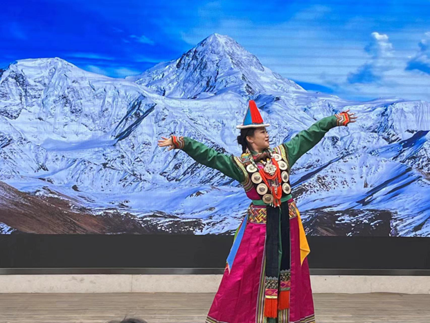 汉语版的《鸿雁》我们耳熟能详,而这次巡演中演员道玛曹带来的是肃北蒙古族的民歌《鸿雁》。她用一曲《鸿雁》与观众们互动,汉语和蒙古语在演播厅的空气中交织,默契的配合、和谐的韵律象征着民族间的团结与交流。