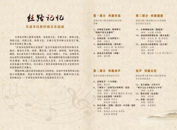 本场巡演共分为丝路传说、丝路回声、思路遐想和丝路记忆四个部分。