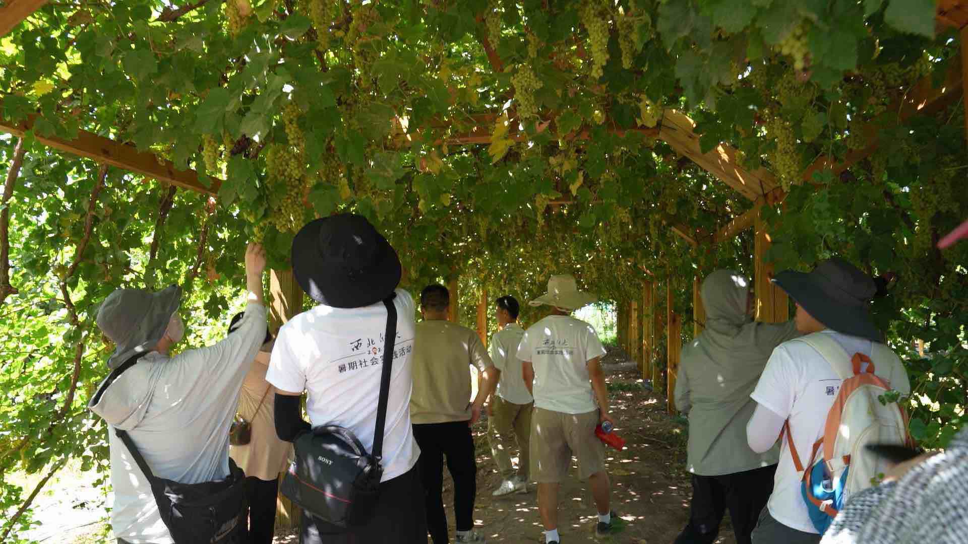 随后,艾山江带领实践团参观了新城西门村的乡村振兴支柱产业葡萄采摘园和电商基地。占地67亩的葡萄采摘园正在进行后期的修整和改造,提升进一步接待游客的能力。葡萄及周边种植的无花果、石榴、向日葵等兼具观赏价值与经济价值当地特色农作物成为了西门村振兴发展的一大抓手。