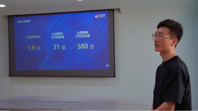 随后,河南手机报的三位业务骨干——牛恒烜、赵逸伦、靳思远分别就微博运营、视频创作、抖音变现三方面与同学们展开了交流。其中,由河南手机报发布的“倪妮河南分妮”这一微博热搜话题词为何能引起网友热议、“一把化妆刷”如何反映“二十大”两个案例激发了同学们的兴趣,给同学们上了一堂生动活泼的“小课”。