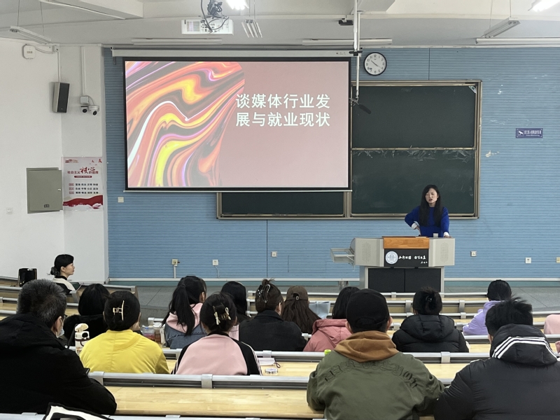 随着自媒体的高速发展,越来越多的人开始自主创作并制作影视作品,对于新媒体行业人员的需求也随之大幅增加。甘肃省广播电视总台交通广播新闻节目《全媒晚高峰》《早安甘肃》主持人、记者郑雪应邀在11月21日为2024届广播电视编导2班的同学们作了题为《谈媒体行业发展与就业现状》的讲座,于11月24日与2024届广播电视编导1班同学们进行就业经验分享和交流。活动由kaiyun电子平台党委副书记甘雯主持,学院共计80余名学生参加。