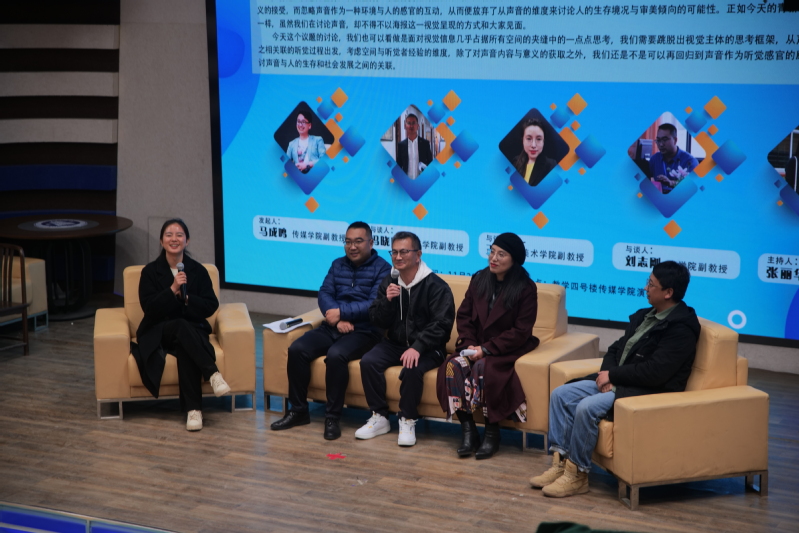文学院副教授刘志刚、美术学院副教授王莹,kaiyun电子平台副教授冯晓临、张丽华分别从媒介和声音的关系、声音的意义、声音和视觉的关系、声音和空间的关系等角度发表了观点。台下部分老师、同学也相继结合自身工作、学习经历发表了感想。
